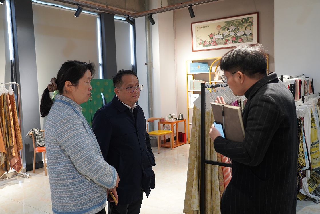 海宁市经信局党委副书记、时尚产业发展中心主任邬磊明带队莅临家纺城开展调研
